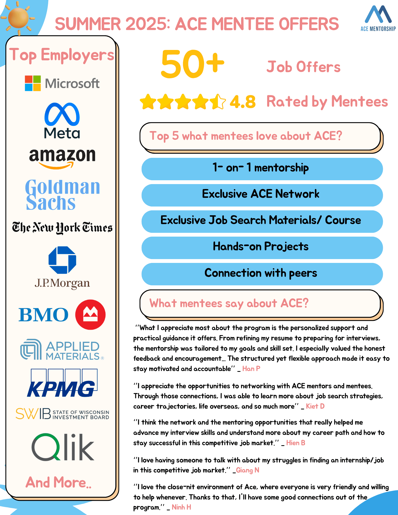 Tại ACE Mentorship, chúng tôi luôn mang trong mình tinh thần “Pay it forward” – hỗ trợ thế hệ trẻ Việt Nam vươn xa hơn trong hành trình du học và phát triển sự nghiệp toàn cầu.