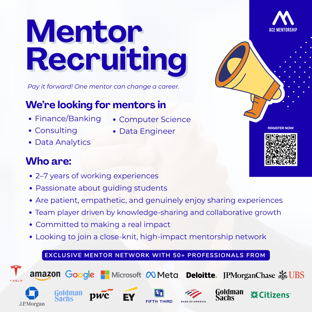 #AcAtXaeMentorship #ACEmentor #MentorRecruiting #PayItForward #Mentorship #CareerDevelopment #Finance #Consulting #Data #ComputerScience #DuHocMy